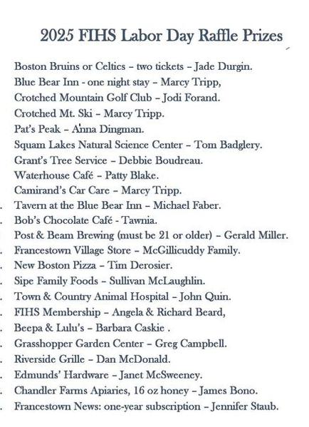 The Francestown Improvement and Historical Society is a 501(c)(3) non-profit organization